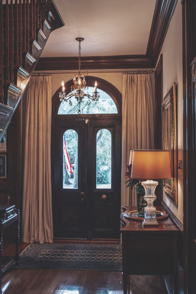 The house survived the 1886 earthquake — an event Averill experienced firsthand in his study as the structure shifted off its foundation. Approximately seventy-five percent of the visible wood remains original, including heart-of-pine floors and parlor doors. The distinctive star motif carved into the fretwork, believed to be the builder’s signature, continues to distinguish the home today.